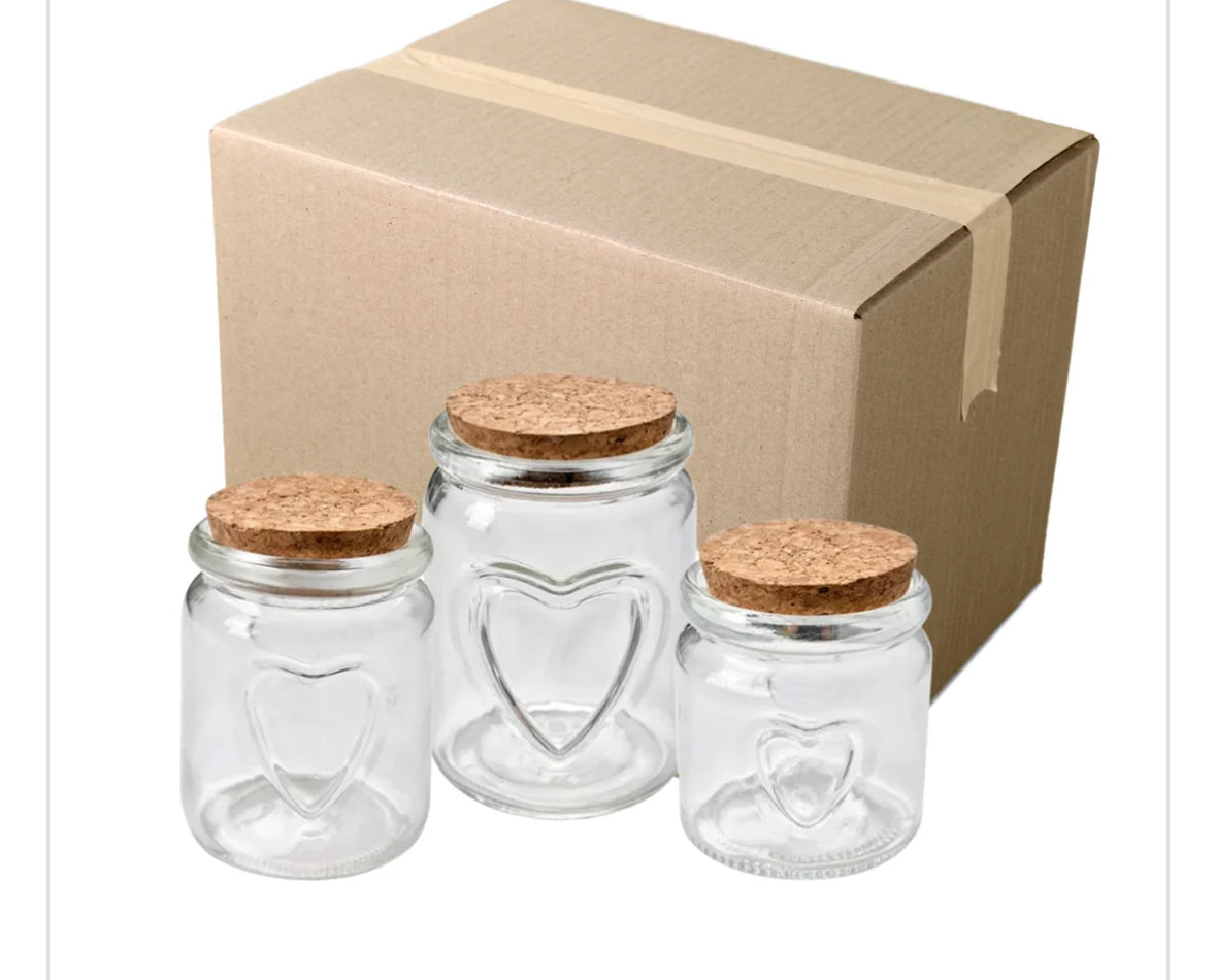 120 frascos de vidrio centro corazón tapa corcho 150 ml